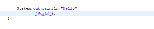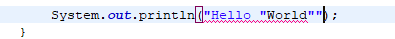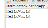 이클립스가 자동으로 해준 것 처럼 " " +" " 으로 작성하면 오류없이 그대로 HelloWorld 가 나타난다.